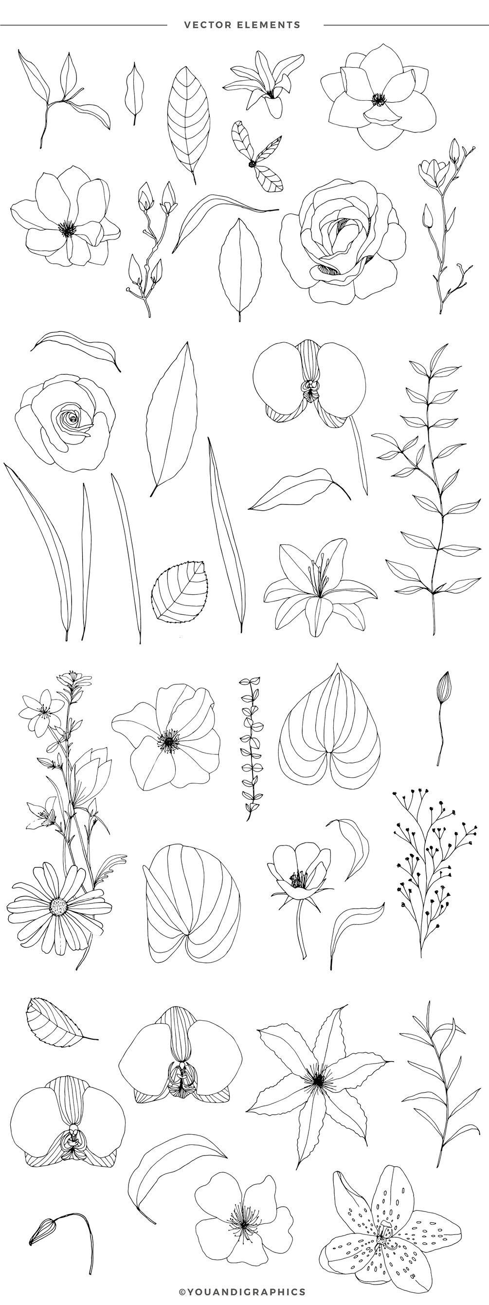 - 43 Individual flowers illustrations, file AI