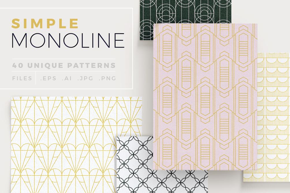 I couldn't be more excited to release this set of 40 Simple Mono Line - Seamless Vector Patterns.